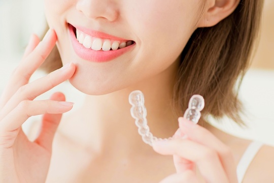 透明なマウスピースを利用した矯正治療は、矯正装置が目立たず、ご自身での装置の取り外しもできます。